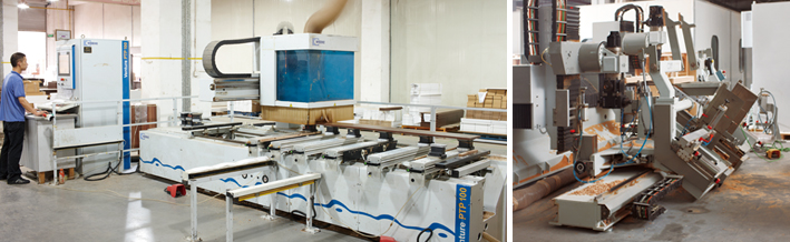 The steady and strong furniture assembly relies on precise drilling position. Our factory imports the automatic connecting and digital controlling drilling machines, from BIESSE Group (Italy). These machines work in 3 dimensions - front & back, up & down, left & right - and combine maximum 14 rows of driller in the same time. The tolerance of the holes is well controlled to less than 0.5mm. All these perfect holes position ensure a steady connection for the final products. That’s why our products have long life cycle.